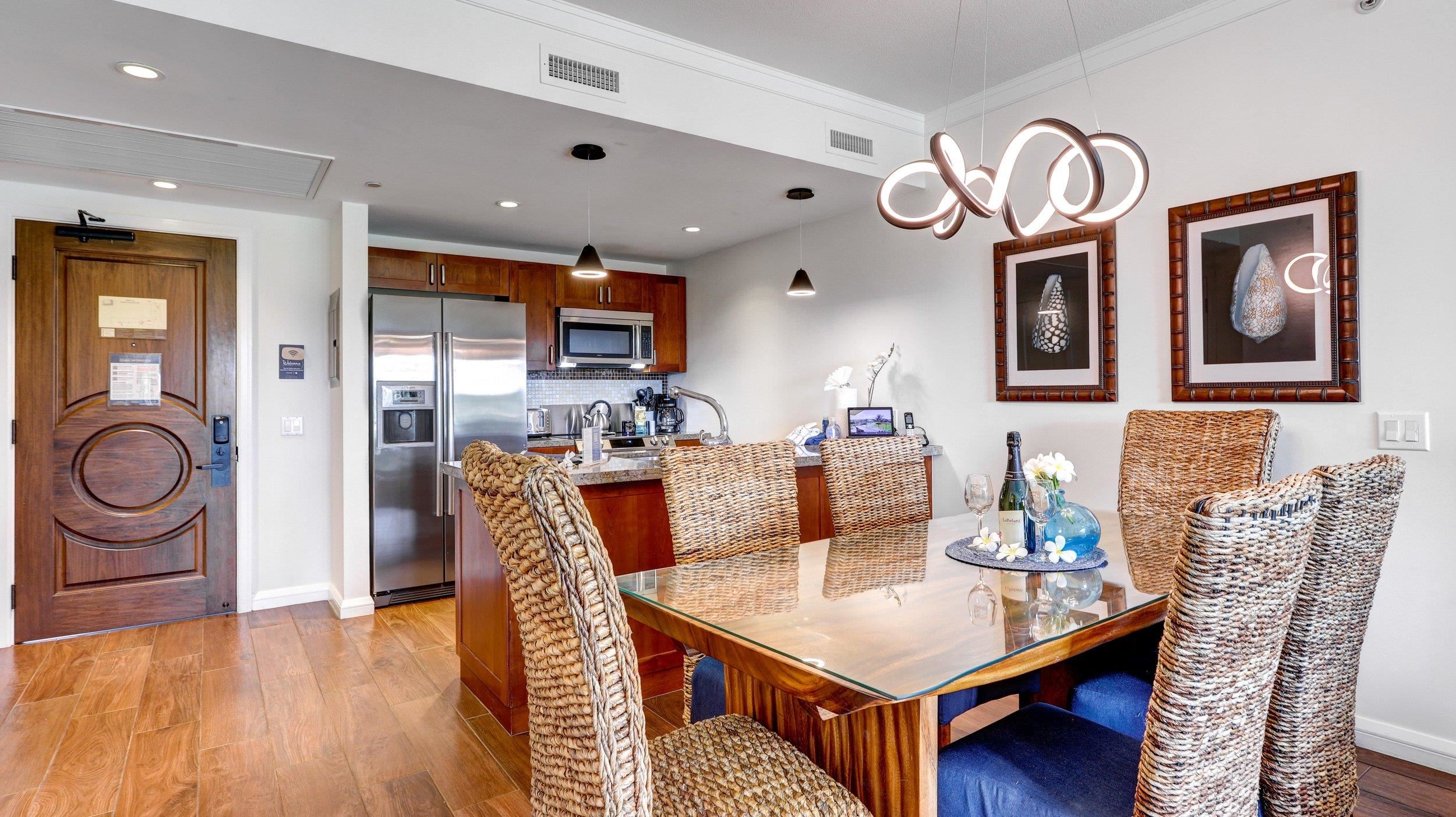 Beautifully Renovated 915 square foot unit with UPGRADED DESIGNER FURNISHINGS, Porcelain tile flooring and a Queen Bed in the Private Den with West Maui Mountain and Waterfall Views! Great location only steps to the elevator for easy access to the 3 pools, beach, Dukes, fitness center, Spa and underground parking Steps from the sands of the beautiful Kaanapali North Beach and the Blue Pacific. Enjoy this One Bedroom with den condo home on the quiet south side of the Konea Tower overlooking the resort waterfalls and Maui Mountains. Best two bedroom/one bath floor plan with bright southern exposure. Prime location only steps to the elevator for access to the pools, beach, lobby, and cool underground parking. Situated above a peaceful waterfall, this beautiful condo enjoys lovely views of the West Maui Mountains. Enjoy sunrise and rainbow views from this beautifully relaxing vacation home. On a green belt, you are joined by songbirds each morning as you drink your Maui grown coffee on the lanai watching the morning sunrise as it makes its way from the North Mountains to the blue ocean. Truly beautiful!